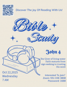 十月26日有浸禮和轉會禮,若有感動,請與楊牧師或余牧師聯絡。